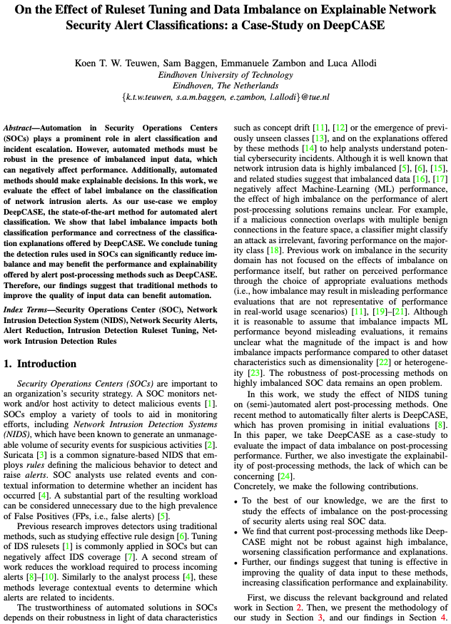 On the Effect of Ruleset Tuning and Data Imbalance on Explainable Network Security Alert Classifications: a Case-Study on DeepCASE