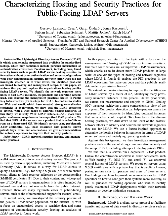 LanDscAPe: Exploring LDAP Weaknesses and Data Leaks at Internet Scale.